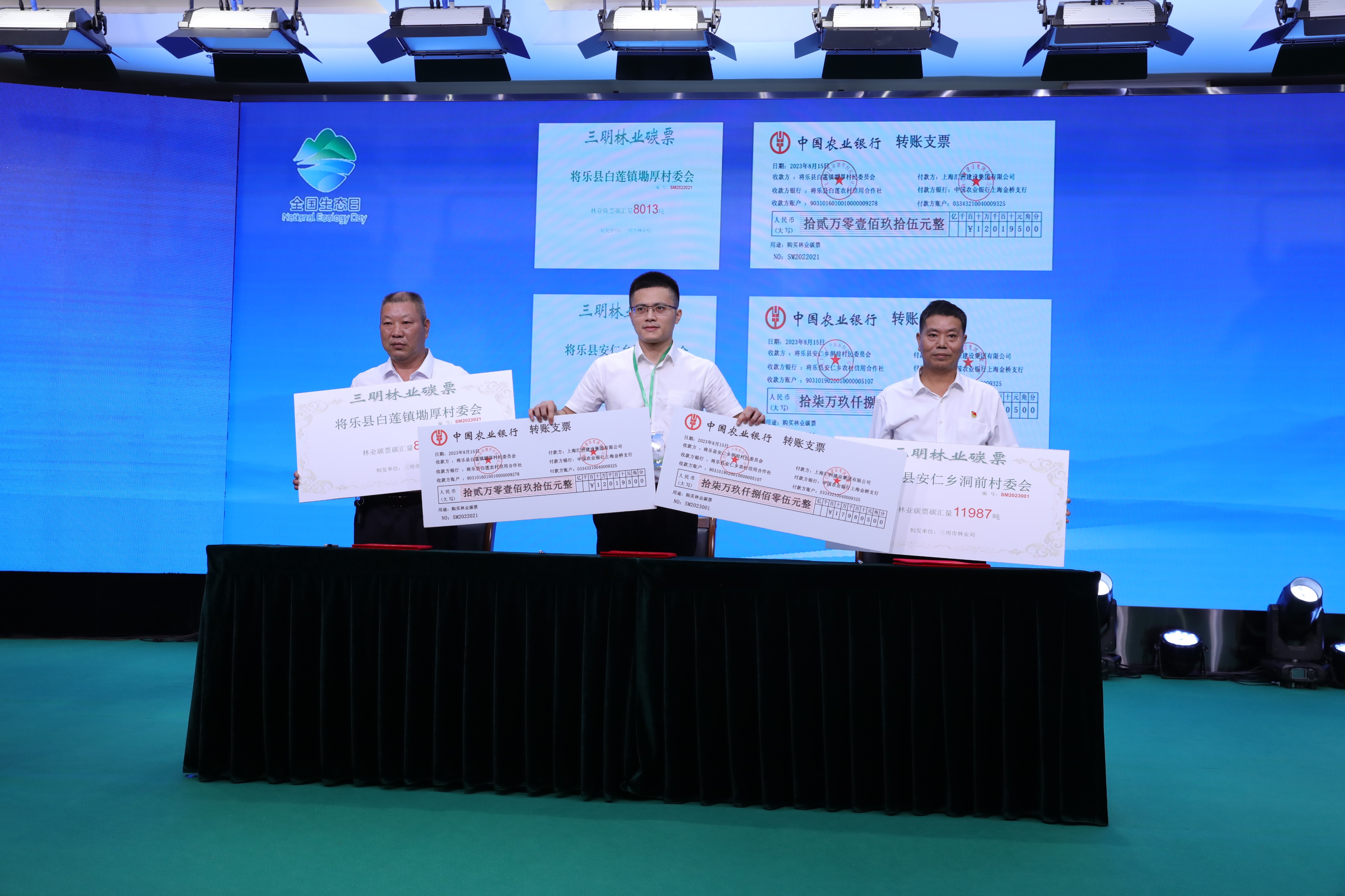 2023年8月15日全國(guó)生態(tài)日福建活動(dòng)在將樂(lè)縣常口村舉行。福建金森引薦上海匯州建設(shè)集團(tuán)有限公司購(gòu)買將樂(lè)縣白蓮鎮(zhèn)墈厚村及安仁鄉(xiāng)洞前村共計(jì)2萬(wàn)噸林業(yè)碳票,完成全國(guó)首次林業(yè)碳票的跨區(qū)域銷售。